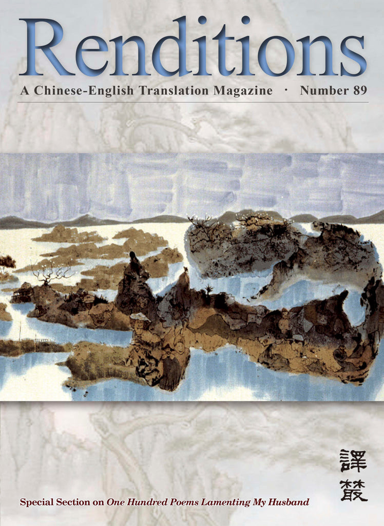 Renditions no. 89 is a general issue with a special section devoted to Bo Shaojun’s 薄少君 One Hundred Poems Lamenting My Husband 哭夫詩百首 translated by Wilt L. Idema. Other features comprise Feng Zikai’s 豐子愷 complex meditation on the meaning and function of time, ‘The Gradual’ 漸, followed by one of Lao She’s 老舍 more significant short stories, ‘A New Hamlet’ 新韓穆烈德, together with Lin Wenyue’s 林文月 reminiscence of her childhood in the Japanese-controlled section of Shanghai, ‘Memories of Jiangwan Road’ 江灣路憶往. The issue concludes with two stories that are part of post-1979 ‘new era’ fiction, including G. K. Yuan’s ‘The Martyr’ 被遺忘的烈士 and Xie Hong’s 謝宏 ‘Drifters’ 自游人.